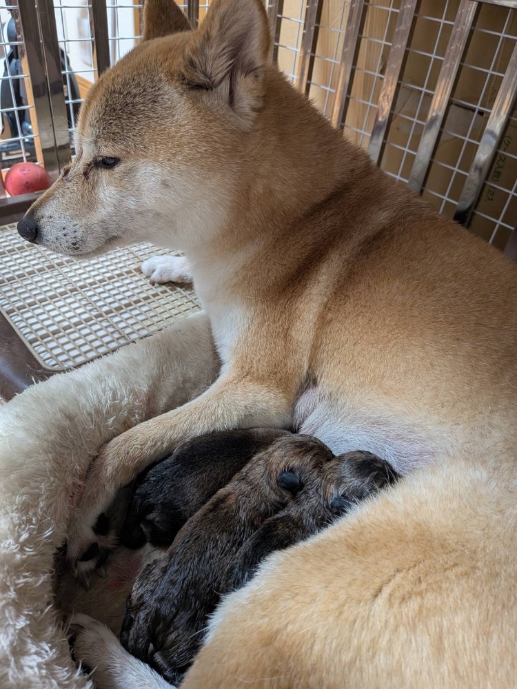 1月31日土曜日早朝、子犬が3匹無事に産まれました😊